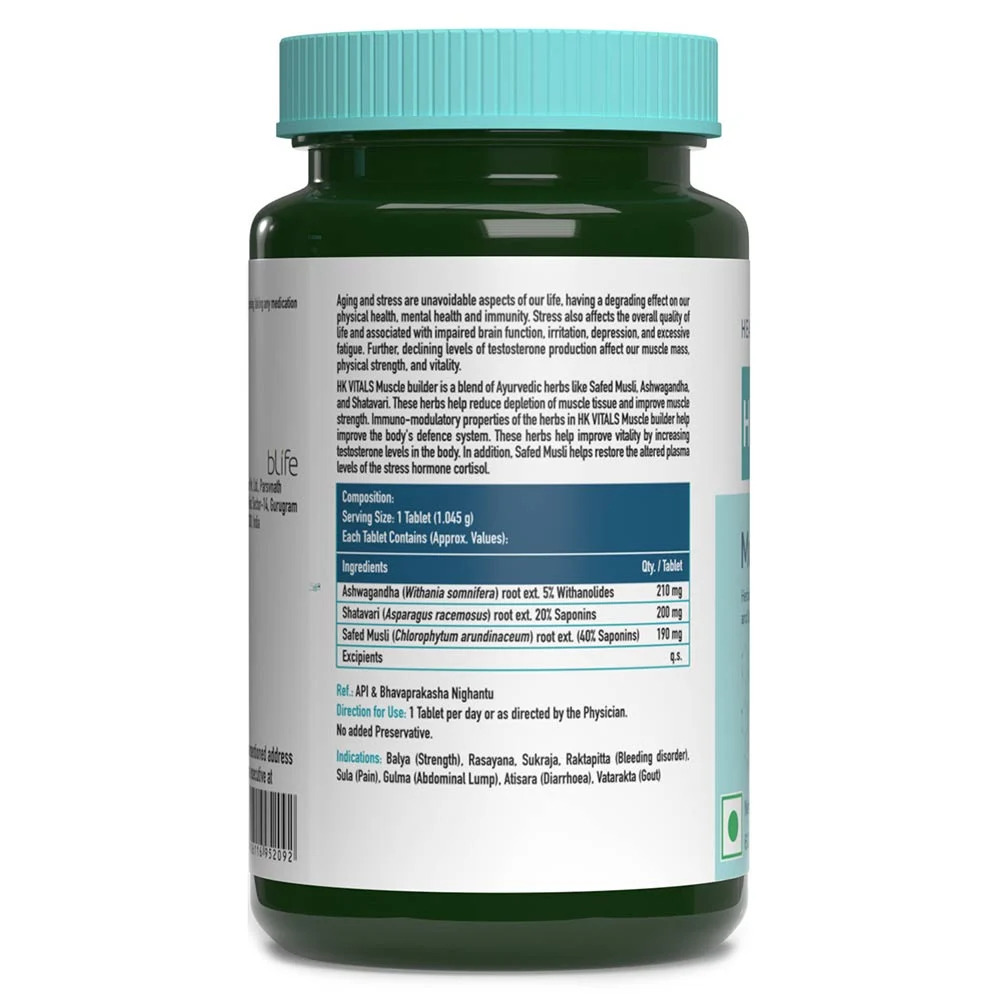 - 100% Natural: Muscle builder is 100% natural and a perfect blend of Ayurvedic herbs like Safed Musli, Ashwagandha, and Asparagus that help increase your muscle mass and physical strength, improve your immunity, vitality, and overall quality of life.