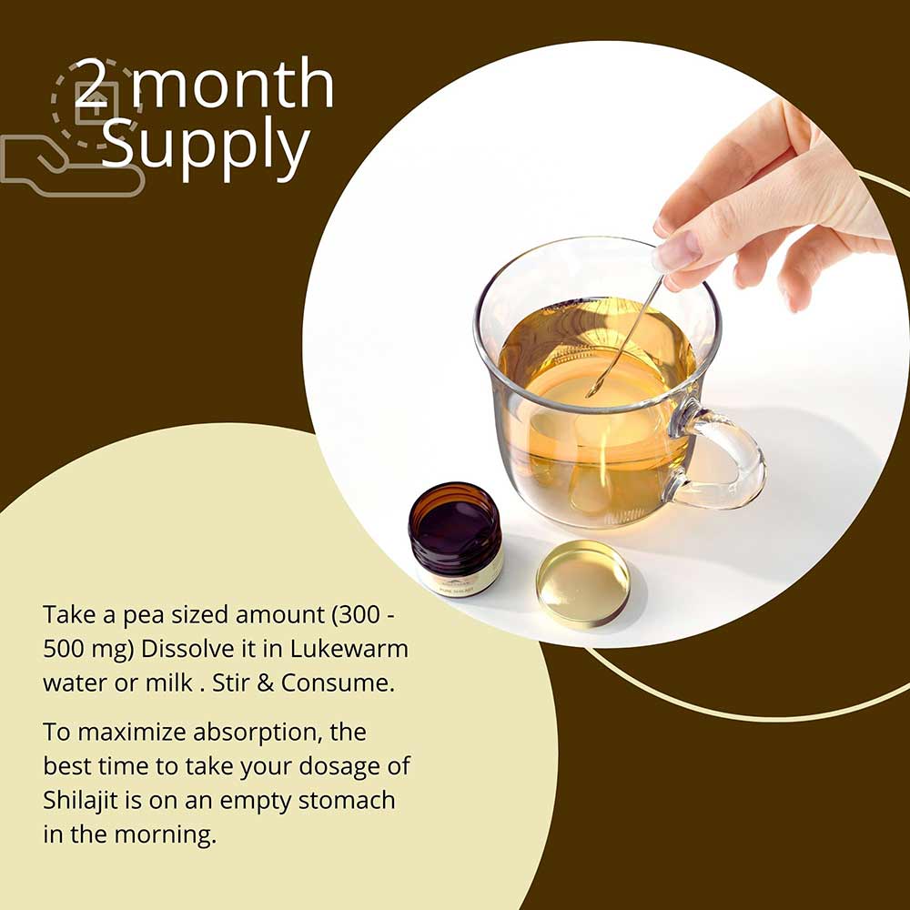 The recommended time to consume Shilajit is on an empty stomach in the morning, as this enhances the absorption. If you feel energy produced after consuming shilajit is too much, avoid taking it during evenings as it may cause difficulty in sleeping.